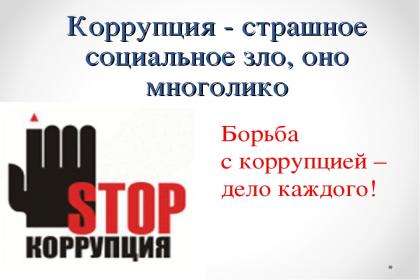 Борьба с коррупцией заключается не только в применении правовых мер, направленных на преследование за совершение коррупционных правонарушений, но и в превентивной работе по повышению уровня правосознания граждан, популяризацию антикоррупционных стандартов поведения, образования и воспитания, на формирование антикоррупционного поведения гражданина.